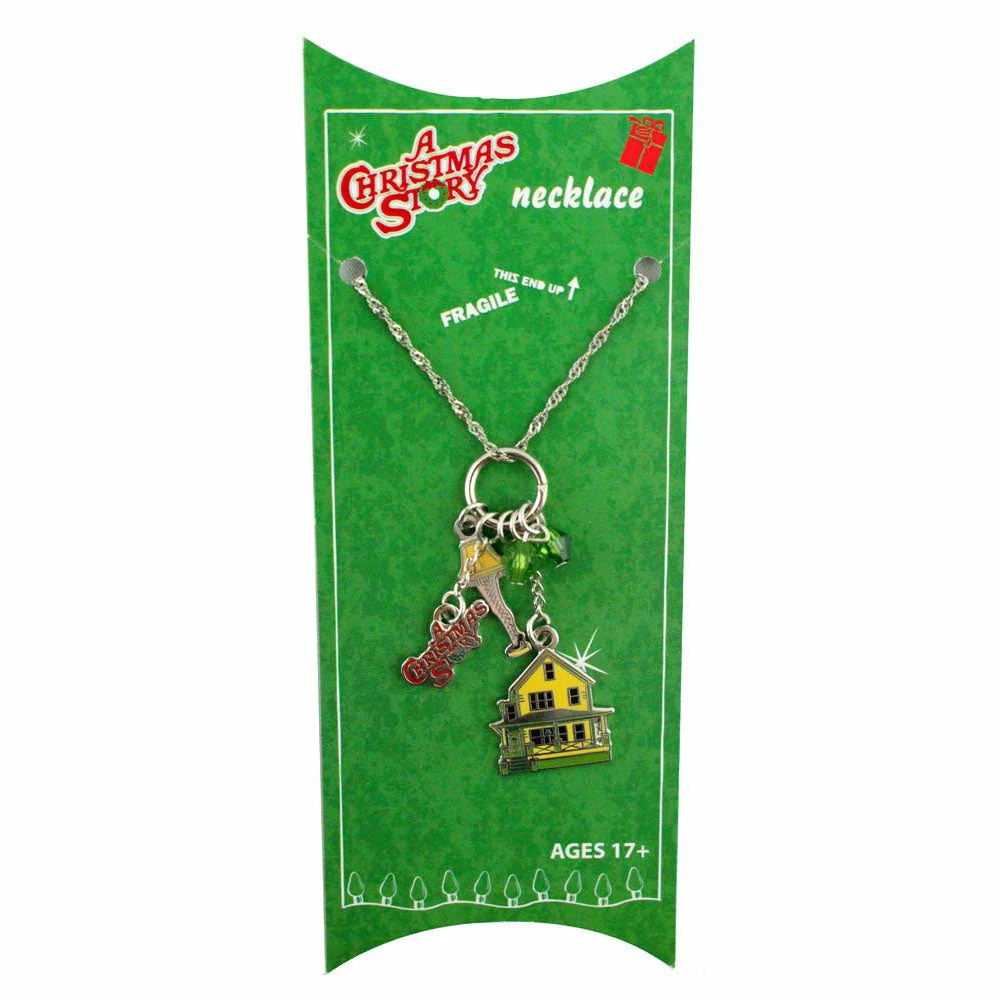 This Necklace boasts iconic charms from the movie A Christmas Story, the Leg Lamp, Ralphie’s House, and the logo from the movie!!
