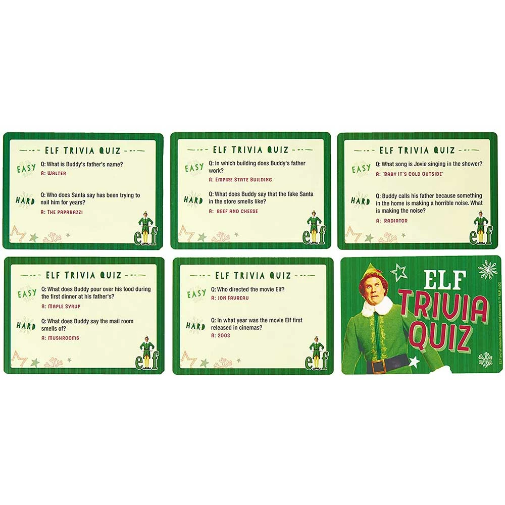 Reminisce on your favorite Christmas movie any time of year with this fun trivia game. Featuring Buddy the Elf, this game is sure to make any fan of the holidays smile!